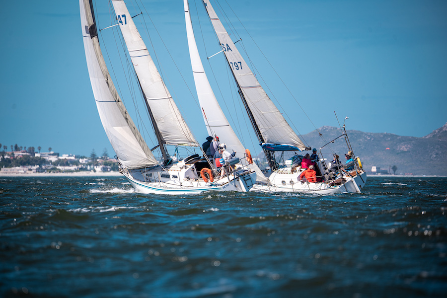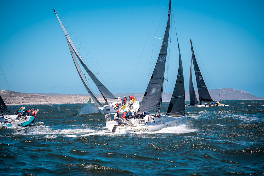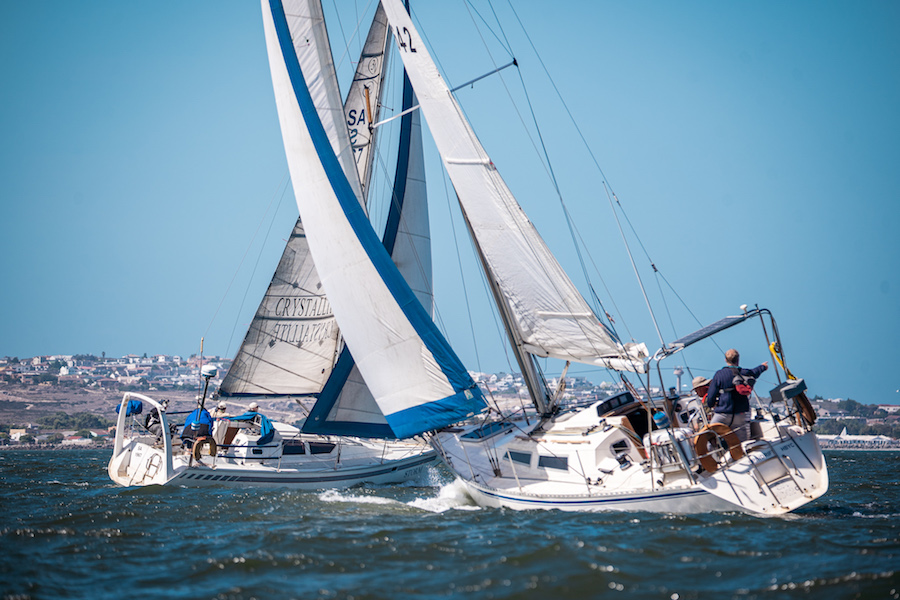 If you were to ask, it would be no surprise to hear that The Bay Race is a favourite with most sailors. The course, which takes you from outside Club Mykonos up to Schaapen Island, to Saldanha Bay, outside the mouth and around Jutten Island, and back to Club Mykonos – offers incredible scenery and tactical sailing. The “slower” boats on handicap start first, followed by the faster boats at the back of the fleet, racing past the boats in front of them to reach the finish line before them.