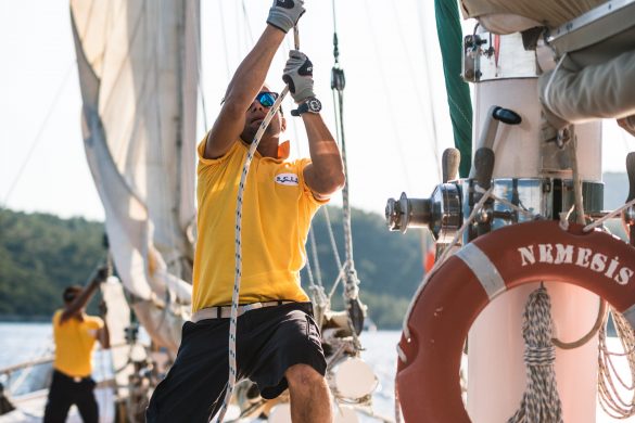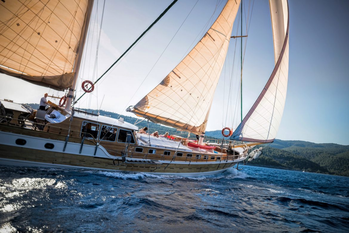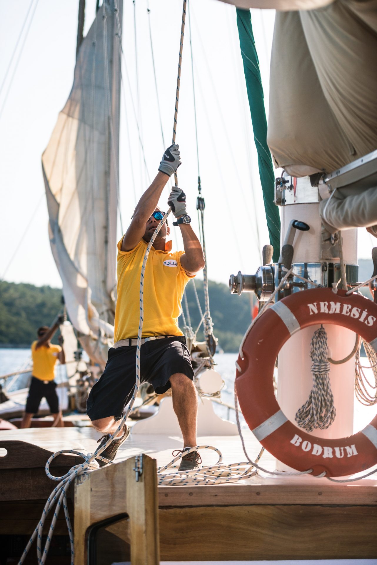 So, why holiday aboard a gulet? Especially if you’re already clocking up so many hours of sailing. Basically, it’s the way to see Turkey, says Loes Douze, owner of ScicSailing. ‘Turkey has such a great coastline, full of hidden bays and coves where you can safely anchor for the night,’ she says. ‘You can still find spots far away from mass tourism, plus, the water is crystal clear.’ As if you need any further convincing, the ScicSailing experience aboard a gulet seems to be a magnet for industry professionals. ‘We’ve had professional sailors onboard who sail the America’s Cup and a lot of regattas all over the world. They all enjoy the pleasure of “leisure” sailing, and not having to do anything themselves (although they might like to lend a hand with sailing),’ laughs Douze. And most of the time, their families find it very relaxing, with no stress involved, she adds.