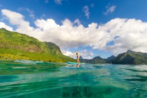 From the jagged peaks of Mo’orea to the sandy atolls of the Tuamotus, the turquoise water is so clear that the beautiful reefs seem shallower then they are. And we found SUPing in the lagoons nearly as effective as snorkelling for looking at the colourful reef fish.