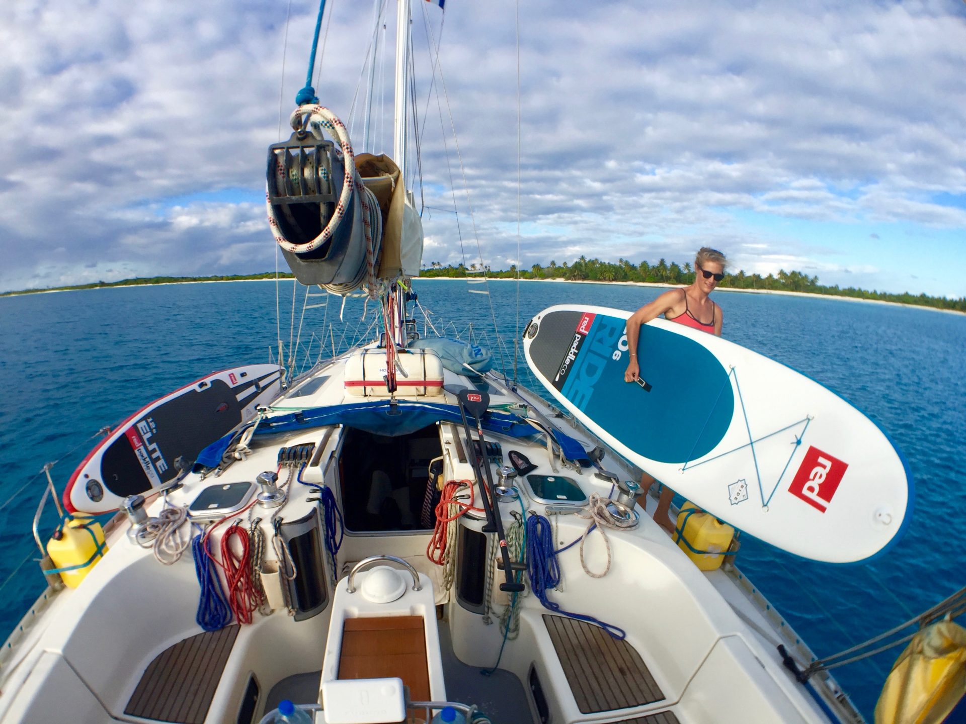 Our Red Paddle Co1 12’6” Elite SUP and 10’6” Ride SUP, could be deflated for below-deck storage, which is far easier than strapping them down like traditional hard boards.