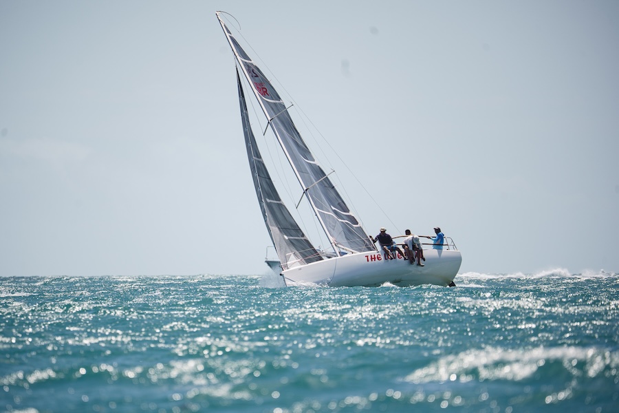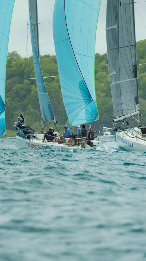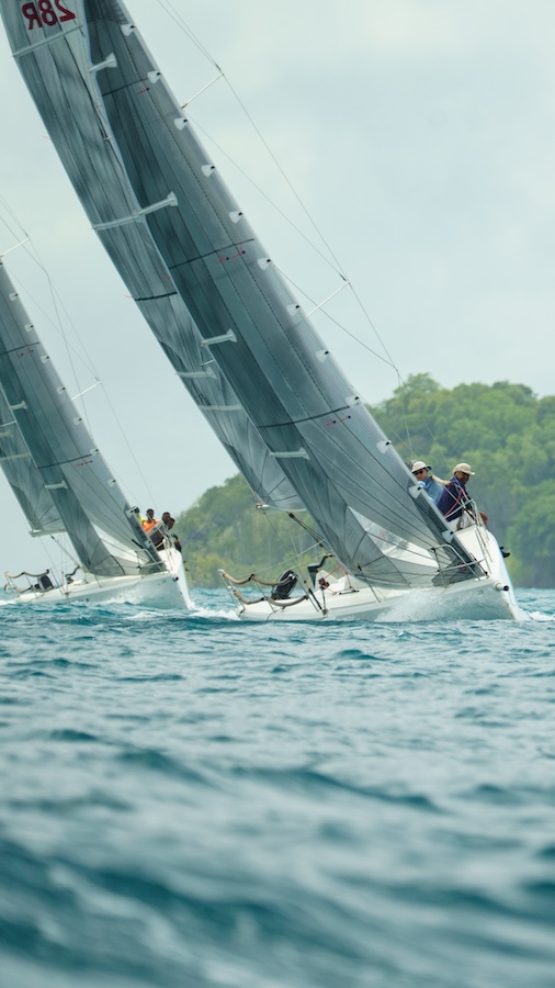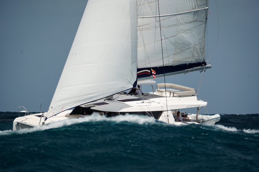 Racing charter boats when you’re used to racing grand prix yachts on a professional racing circuit is quite an adjustment. In the spirit of the event, all competitors raced on Sunsail or Moorings 454s. Professional helmsman, Tony Norris of TP52 Phoenix fame won the regatta overall. Tony entered the regatta with his permanent shore crew as a thank you for their hard work during the 52 Super Series season. The team on Knot Fast Just Furious included Phoenix boat captain James Largier and his wife Kerry, boat builder John Upman and shore crew Justin Clark, both with Phoenix. The team showed incredible skill in making a charter catamaran fly.