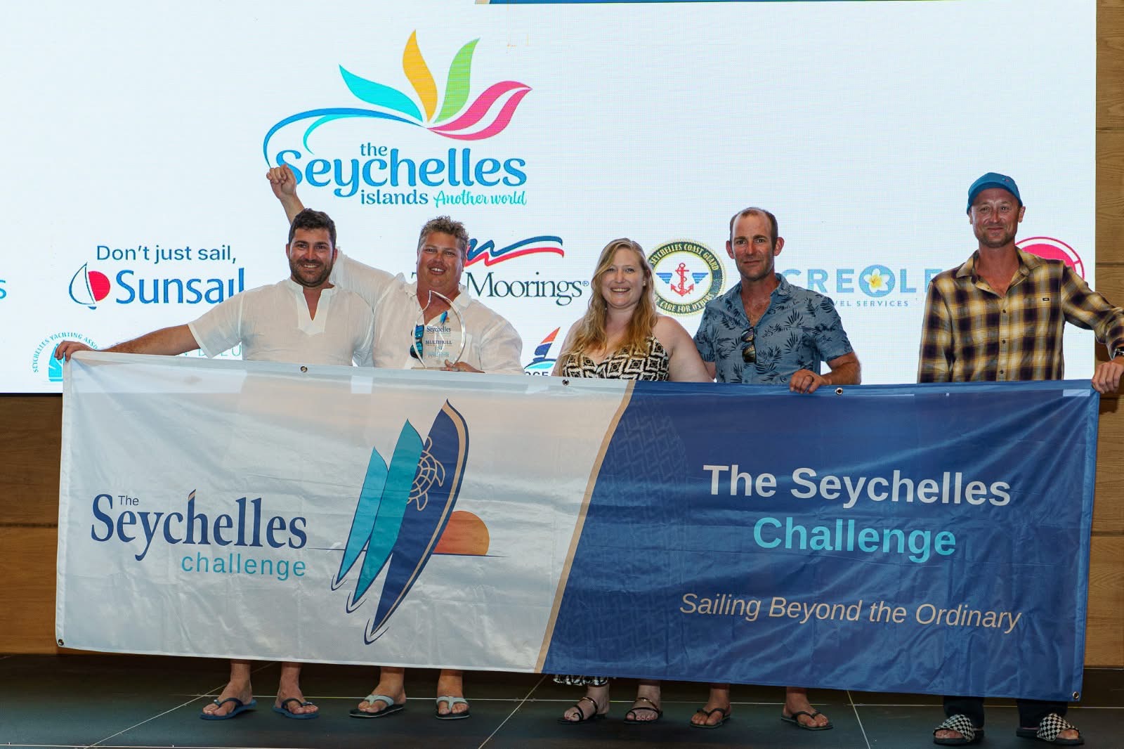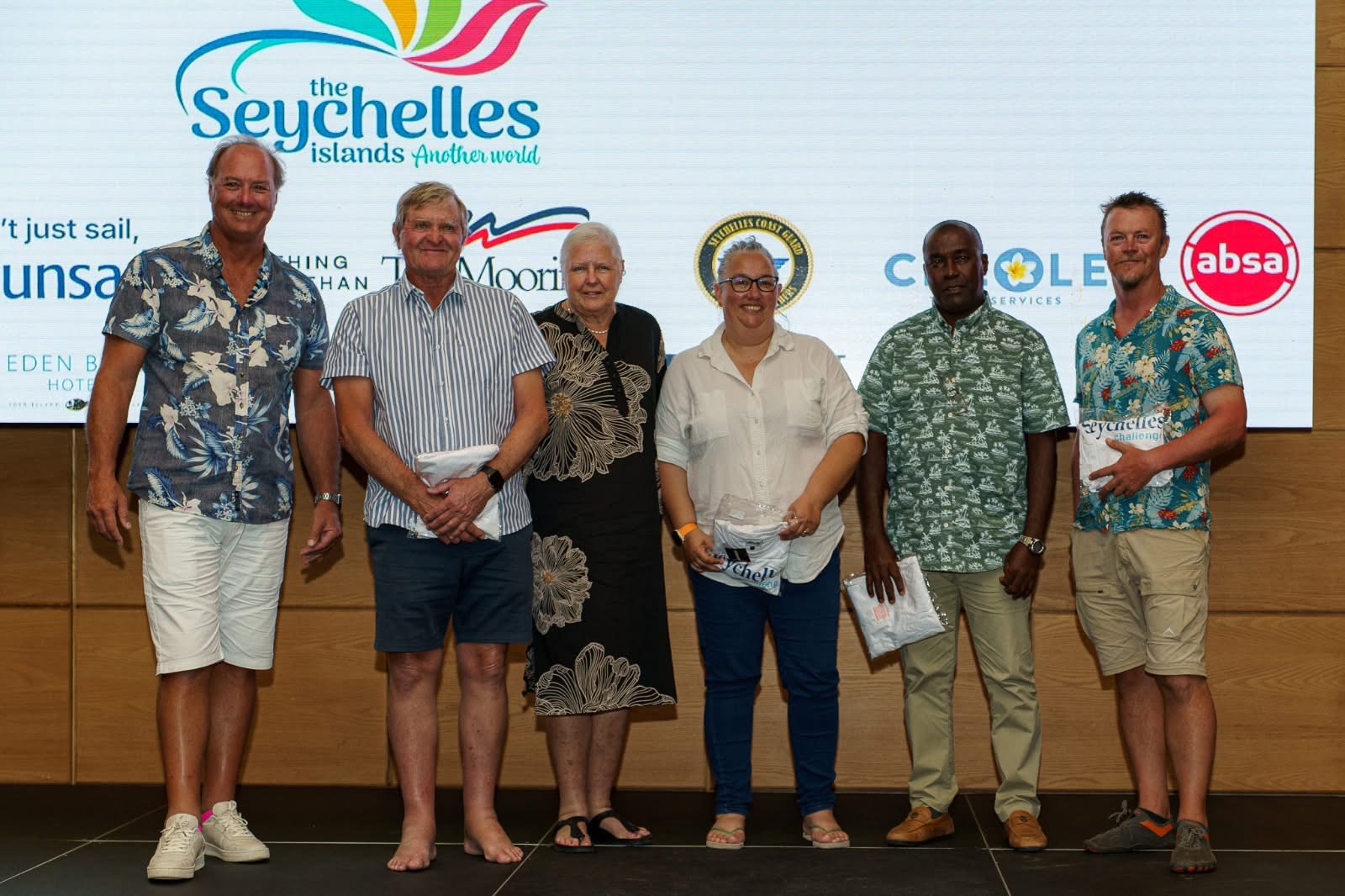 Appreciation awards were awarded to: the Seychelles Challenge sailing committee, Captain Edwin Constance of the Seychelles Coast Guard and his team Josh, Albert and Nicholas, Bernard Poole (Fareast representative), Rory Percival and Rhys Davies from HO at Moorings and Sunsail and to their man on the ground, base manager, Jean Paul D’Unienville, and to Alain Alcindor (Ocean Sailing Academy).