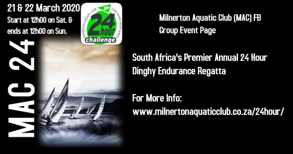 The 24th MAC 24-HOUR CHALLENGE will take place on Saturday 21st of March and Sunday 22nd March 2020 – sailed on Rietvlei, Milnerton starting at 12h00 Saturday and finishing at 12h00 Sunday.